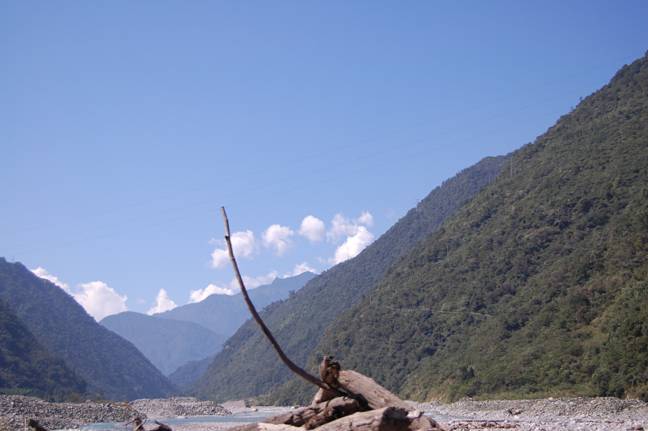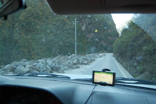 接下去的這段路曲曲折折,至少九九八十一彎,行車很累。據(jù)稱到了冬天,路面上暗冰四布,交通事故是家常便飯!