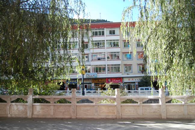 整個老鎮(zhèn)沿河而建,318國道穿城而過。由于地形所限,拓展空間受困,所以在對面的跑馬山(因康定情歌而出名)山腳下已經(jīng)建了新城,遠(yuǎn)眺非常整齊和亮麗。照片顯示的是老城的略影。