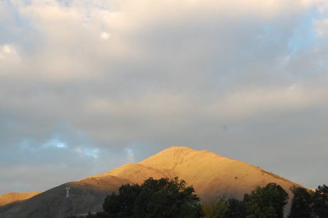 日出時分,普普通通的一座山頭也覺得金字塔似的偉岸。(見下圖)