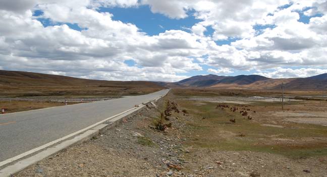左右的山間盤旋,不再有上上下下的感覺,連續(xù)幾小時的荒涼草甸很快就能讓人視覺疲勞、昏昏欲睡。比起之前經(jīng)過的那段318國道,這里的路況卻逐漸好起來了,而沿路也聽到了最多的車輛失事的故事。。。