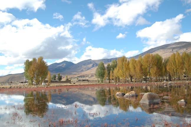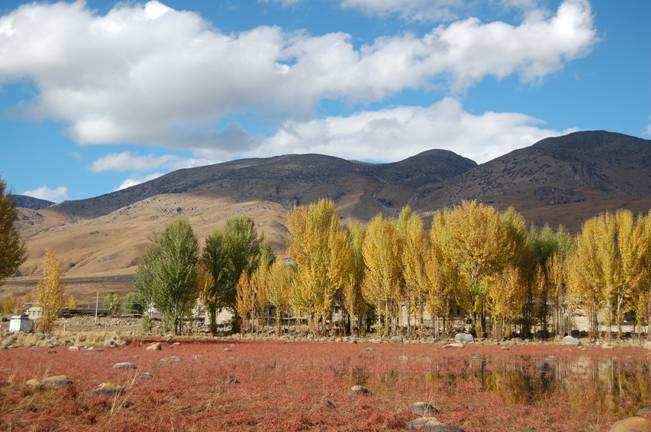 金秋十月桑堆紅草灘的旖旎美景成為稻城上鏡率最高的景點,每年只有1-2周時間這里的池塘滿布紅色水草,藍(lán)天映襯下的風(fēng)光是稻城的標(biāo)志之一。(門票:RMB10.00,付了錢沒給票。。。)(見下圖)