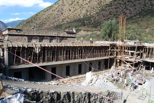的垂直落差,可萬萬不能有恐高癥!縣城地域狹小,連解放軍兵站都找不到一塊空地,只能建在西去10多公里的山間。而此地的餐館卻貴得令人咂舌,一條普通的雅江魚賣RMB120.00/斤!