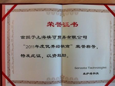 Sensata(森薩塔科技)授予我司(上海?少Q(mào)易有限公司)2011年度優(yōu)秀經(jīng)銷商稱號(hào)