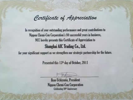 我司獲NIPPONCHEMI-CON八十周年特別獎(亞太區(qū)僅授5份)